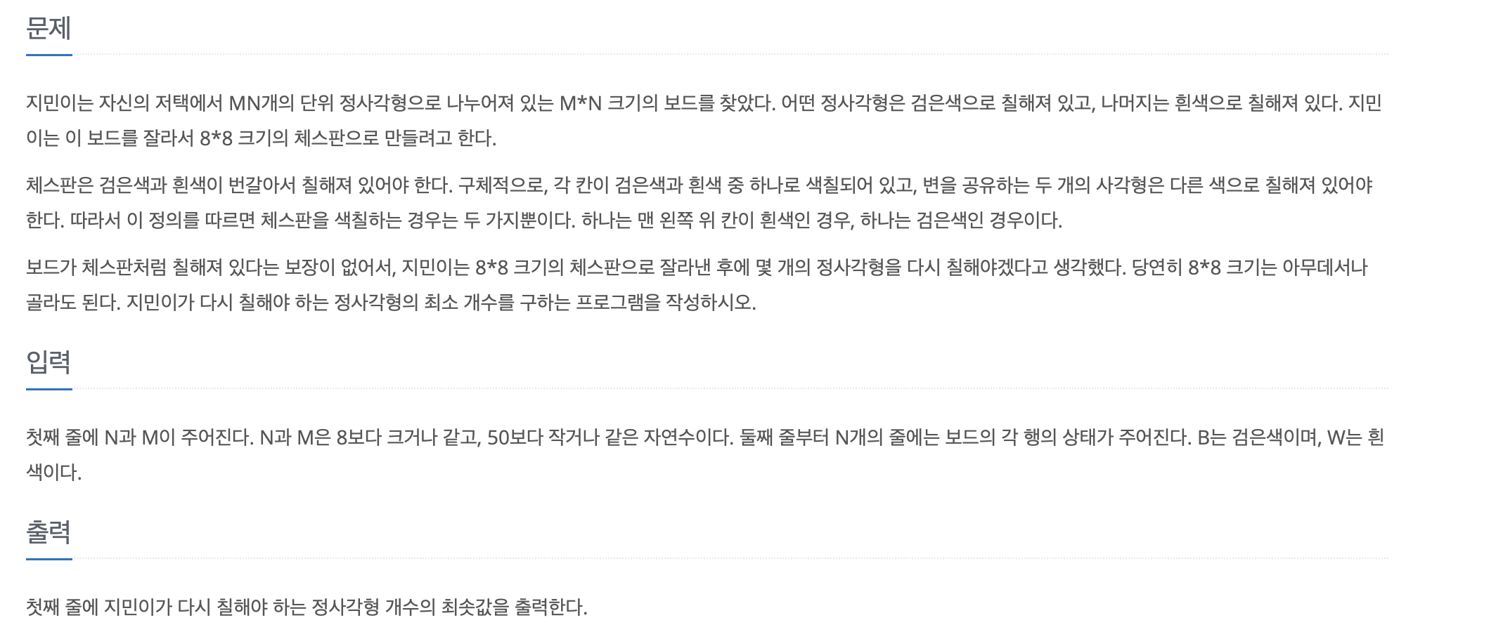 https://www.acmicpc.net/problem/1018