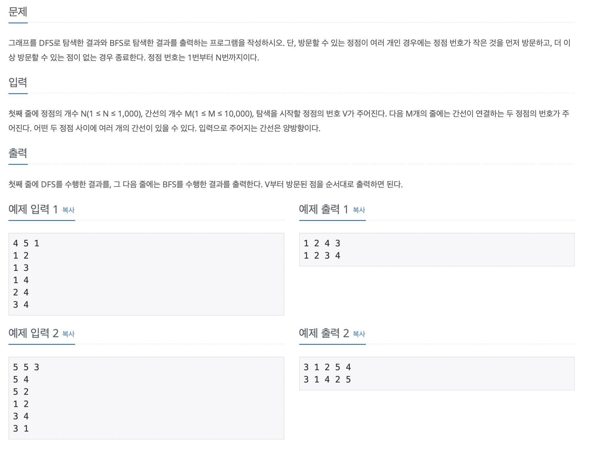 https://www.acmicpc.net/problem/1260