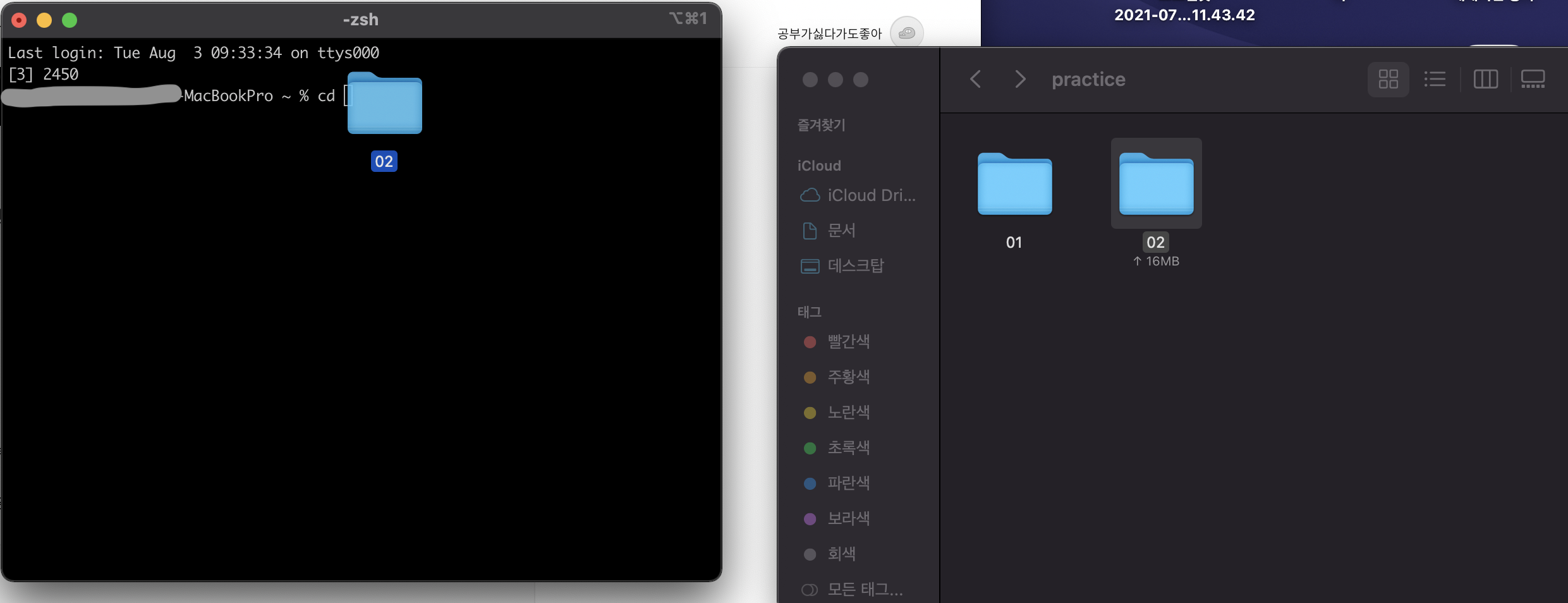 명령창 or 터미널에 "cd 파일경로"를 입력합니다.