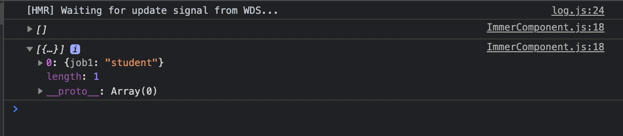 버튼 클릭 후, 콘솔창에 {job1: 'student'} 객체 추가됨.