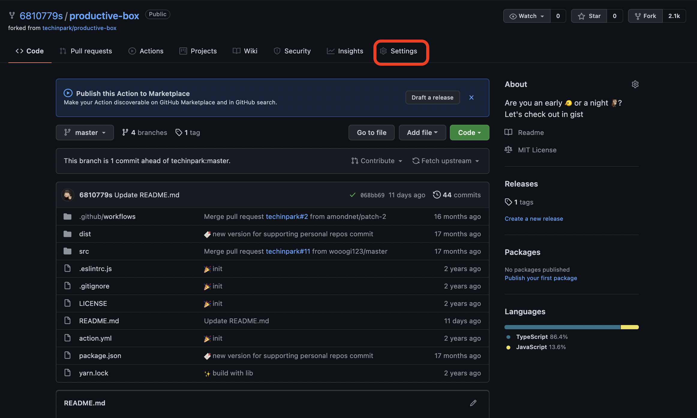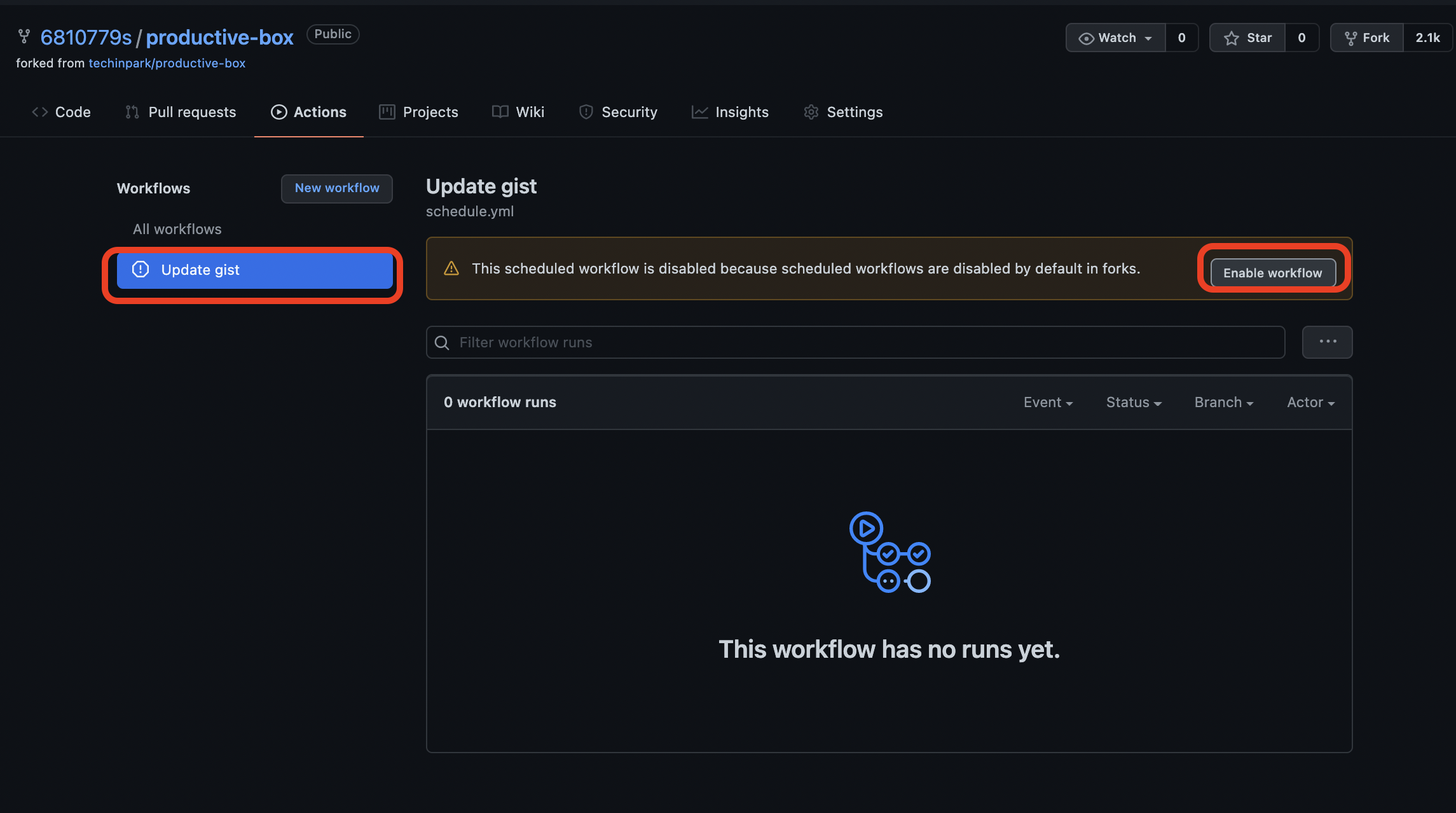 fork한 레파지토리에 들어가신 후, Action으로 들어가세요