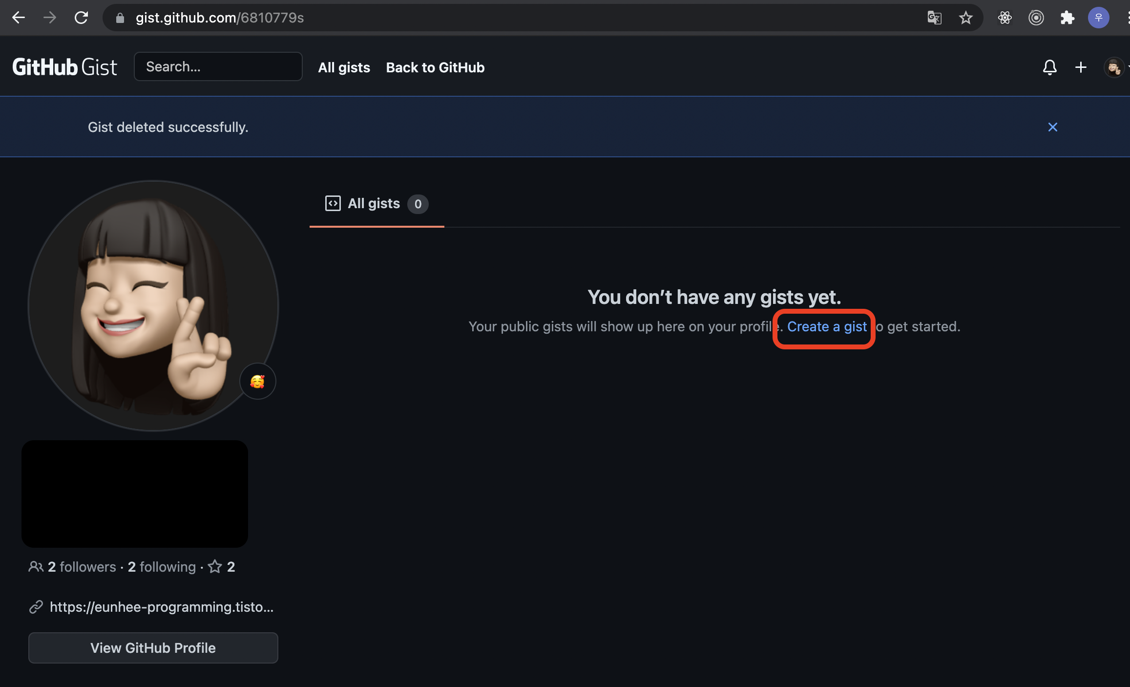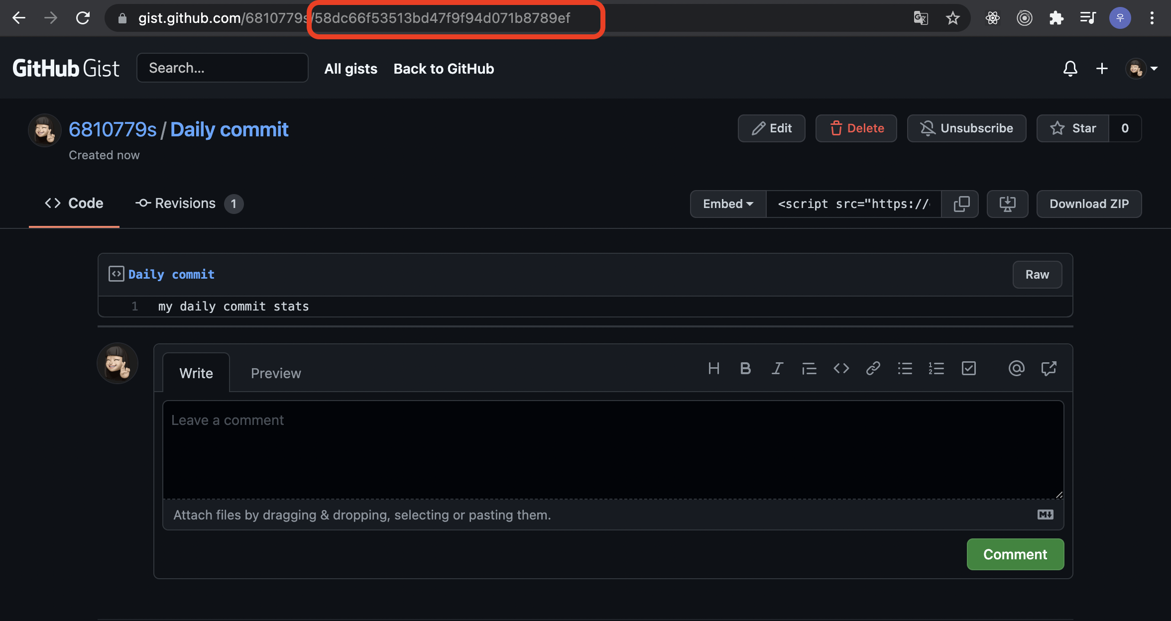 빨간 네모박스에 친 저 부분이 gist 코드번호 이므로 메모장에 적어둡니다.