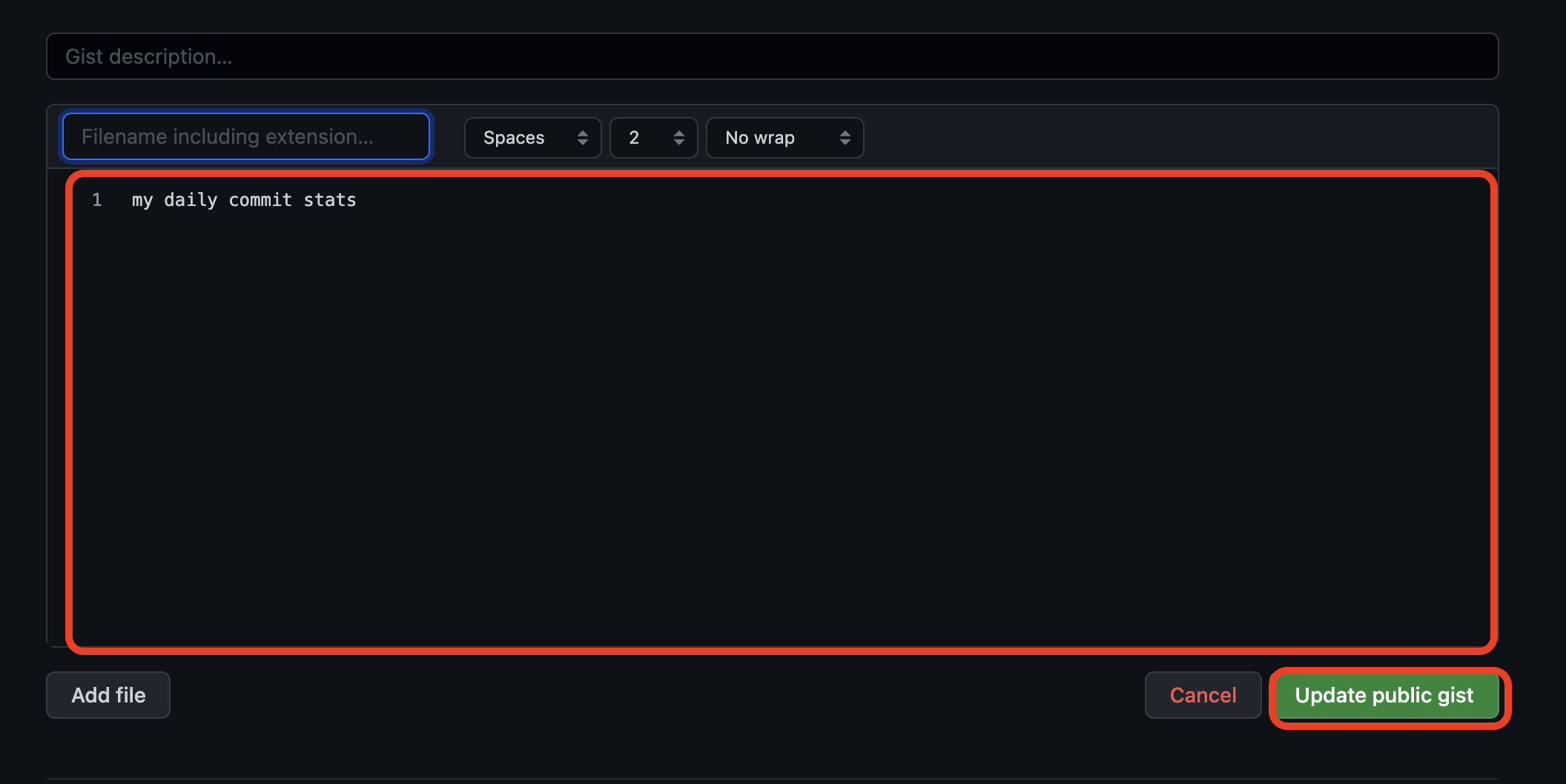 - gits description과 filename은 그대로 냅두고 아래 contents부분만 원하는 내용으로 작성해주세요.