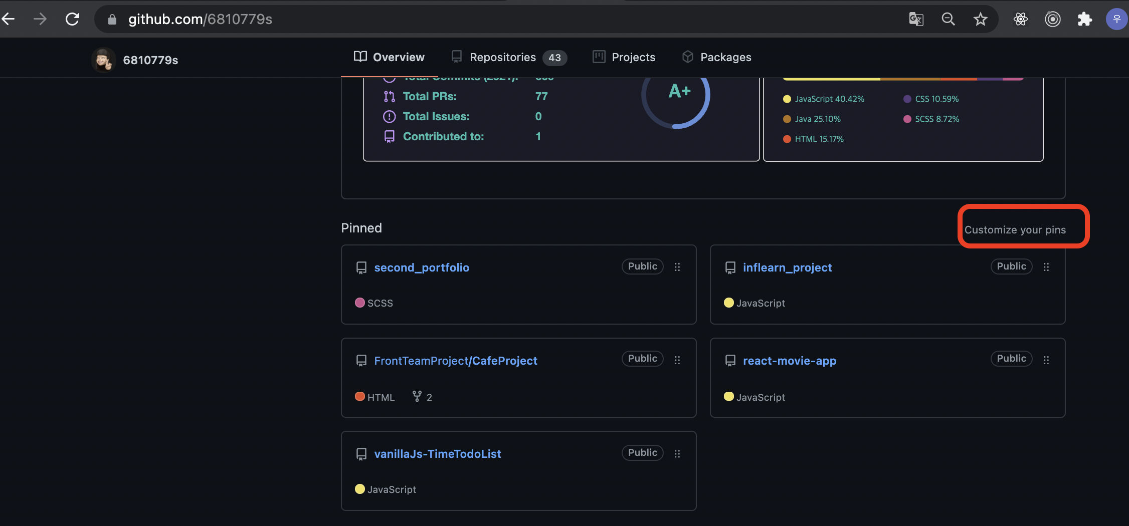 2021.09.23 - [(GitHub)깃허브 사용법] - (GitHub) 깃허브 프로필 꾸미기 - 2탄 (Stats 표 만드는법 + Github작성시 꿀팁)