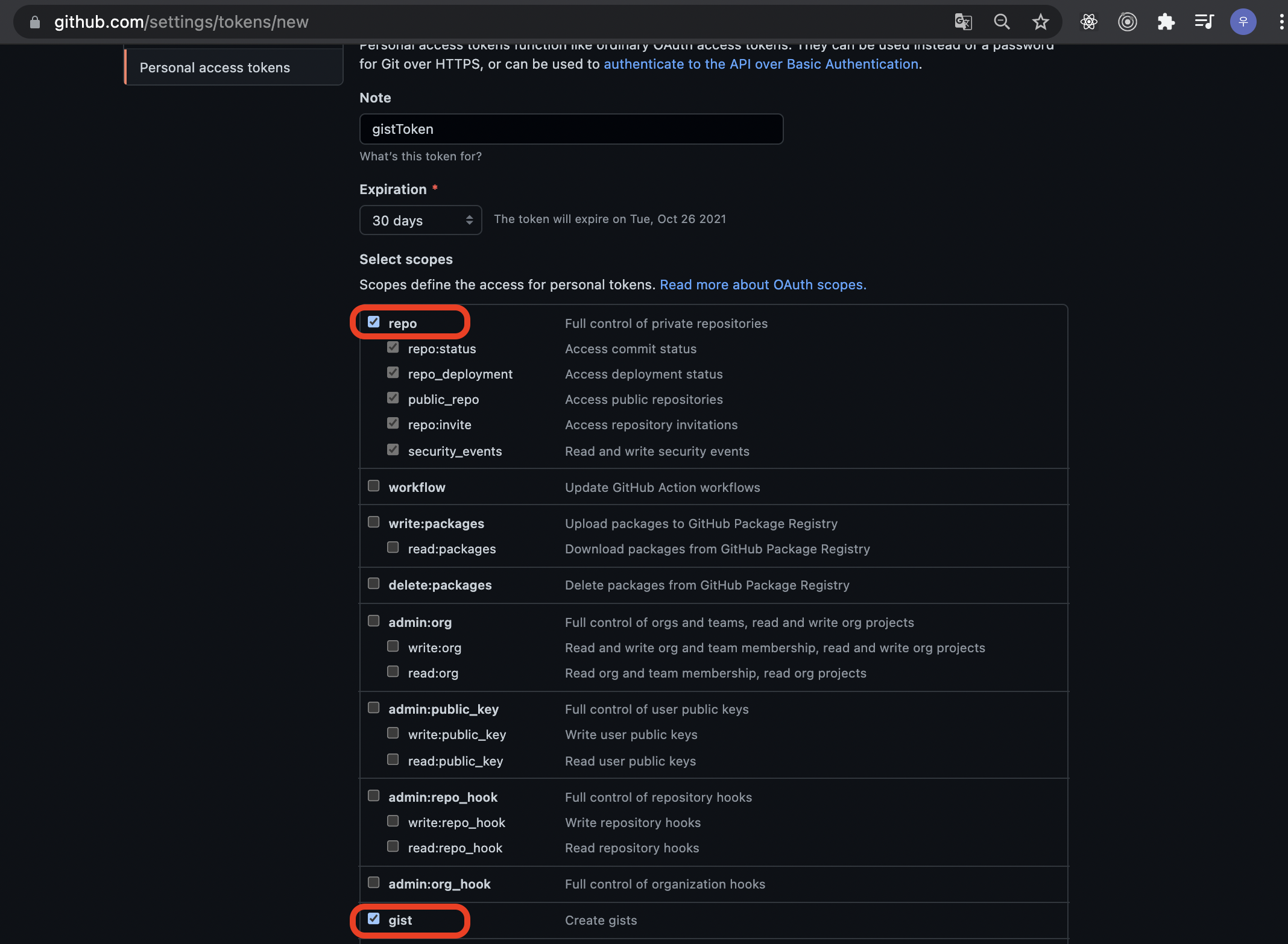 Name : GIST_ID, Value: 저장한 gist코드번호 입력