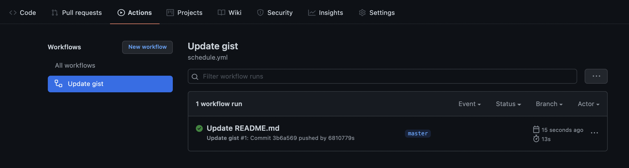 다시 Action 으로 들어가서, 조금 기다리시면 초록색 체크가 옆에 뜹니다.