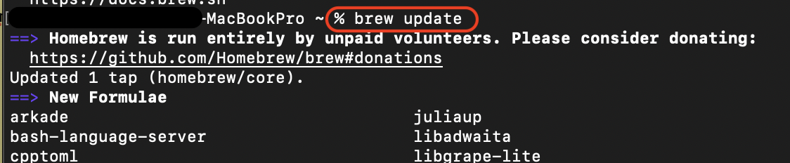 이미 설치가 되신 분들은 일단 Homebrew업데이트 부터 해줍시다.