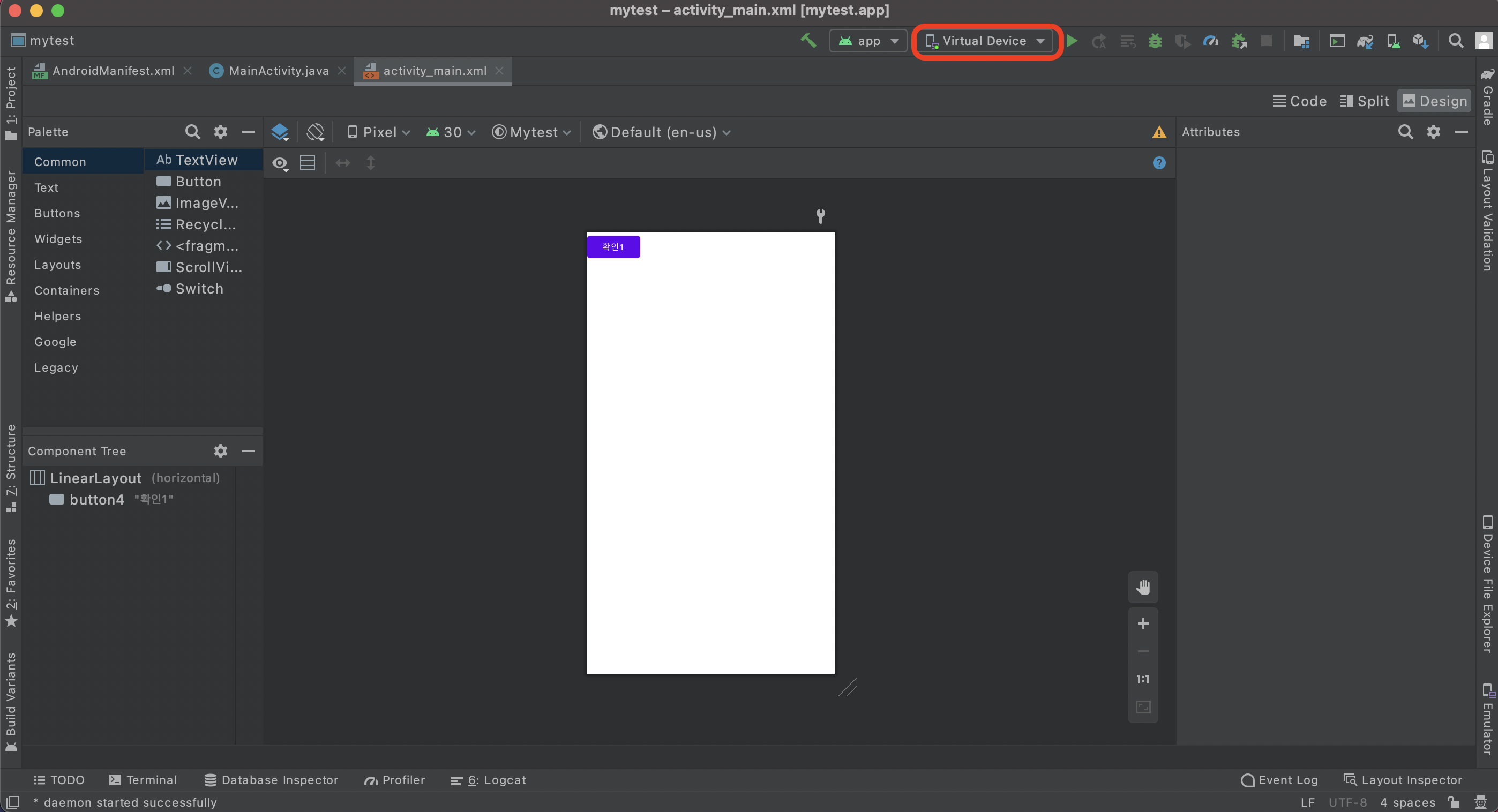 빨간 박스로 표시한 곳 Virtual Device 로 바꾸면 완료.
