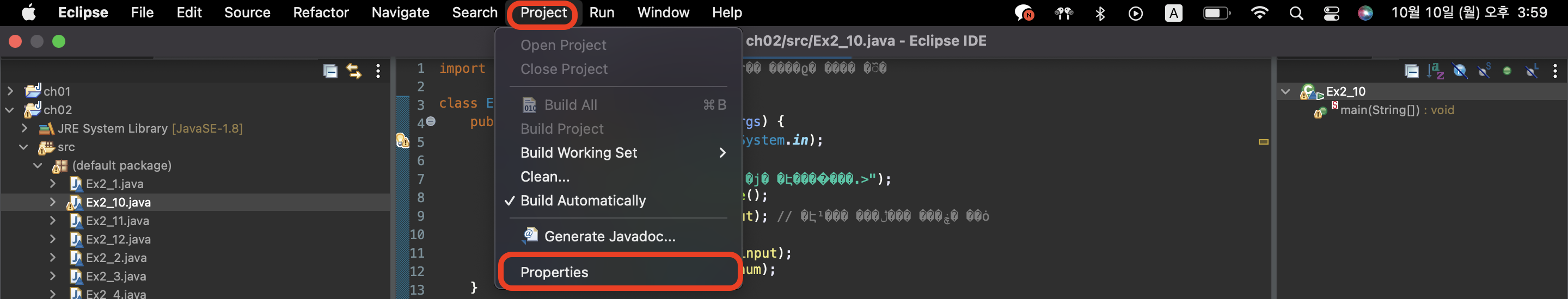 자바의정석 파일 import해서 복습하려하는데 글자가 깨지더라구요.