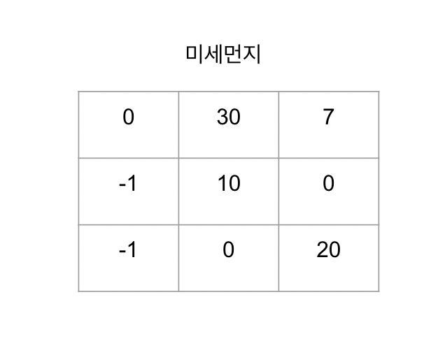 아래와 왼쪽 그림과 같이 미세먼지가 분포되어 있다고 할때 ,