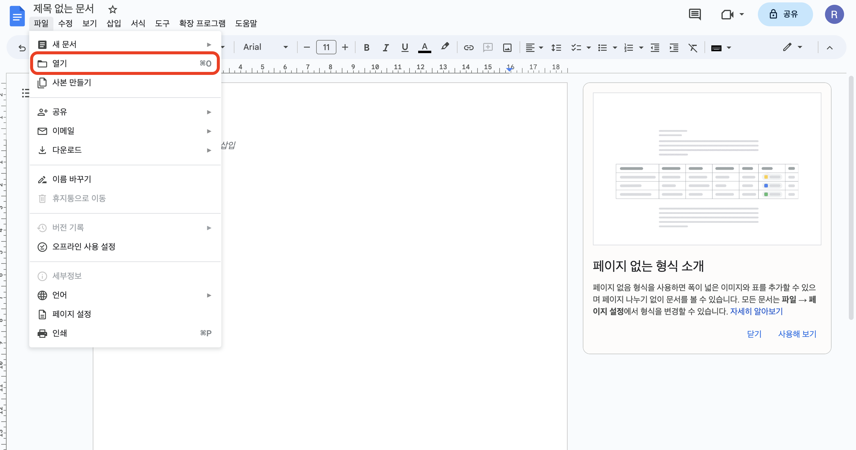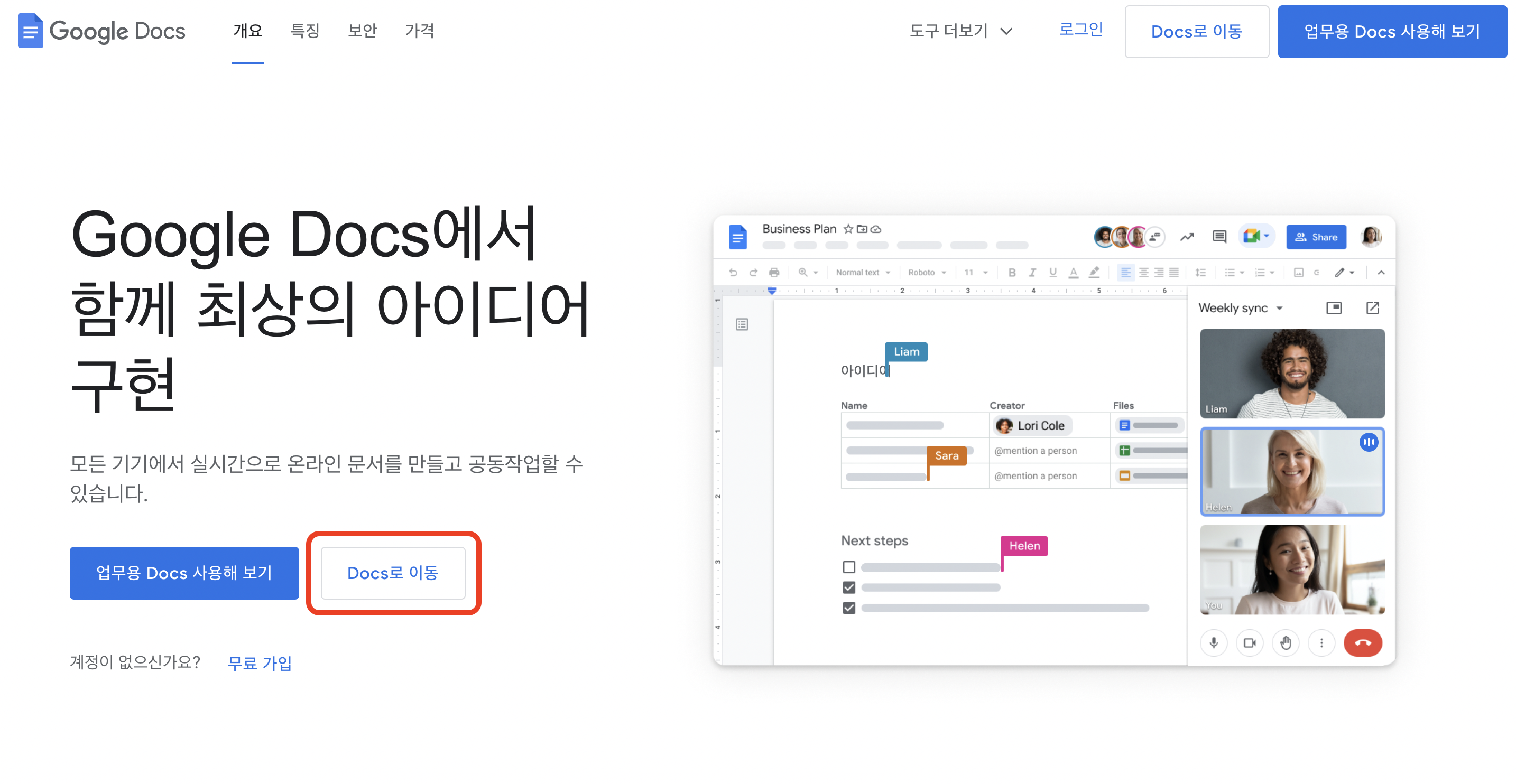 1) 아래 링크 클릭 or 검색창에 구글 docs 검색