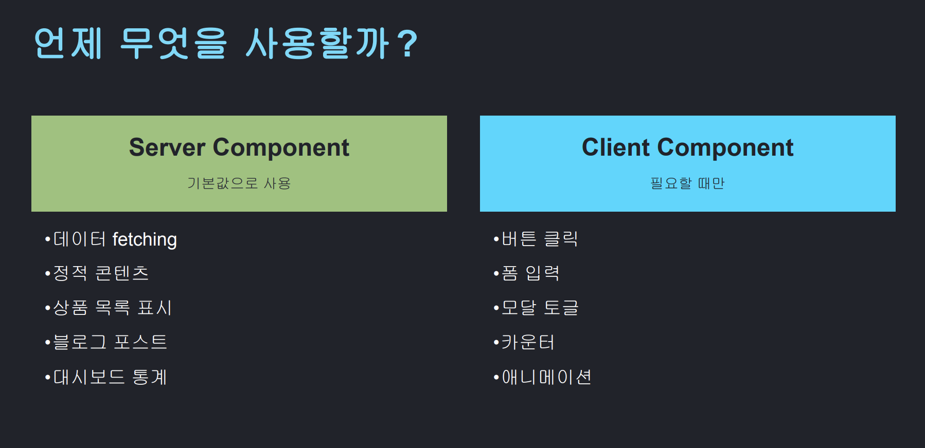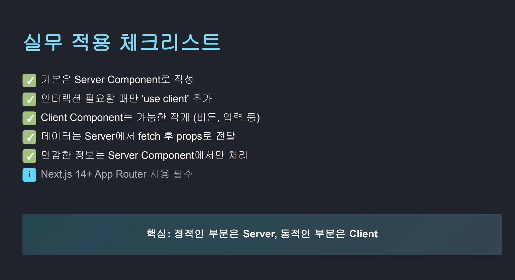 처음에는 Server Component와 Client Component를 구분하는 것이 어색하게 느껴질 수 있고,