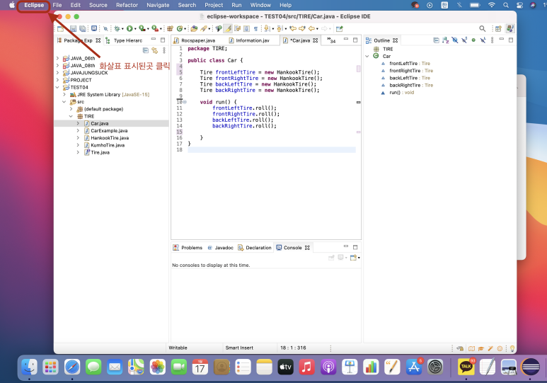 2.맥북 왼쪽상단 Eclipse 클릭