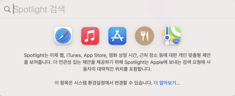 누를경우 아래 사진처럼 Spotlight 검색이 뜹니다.