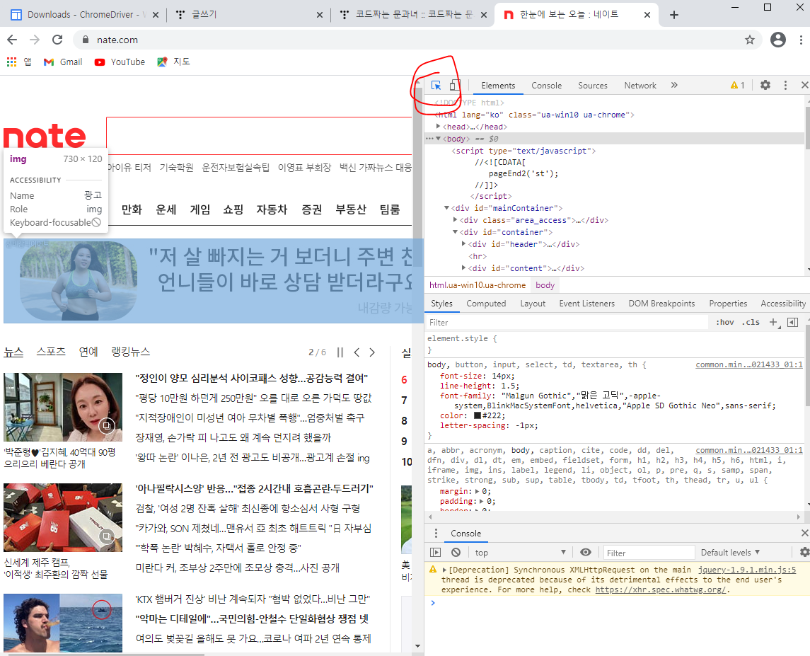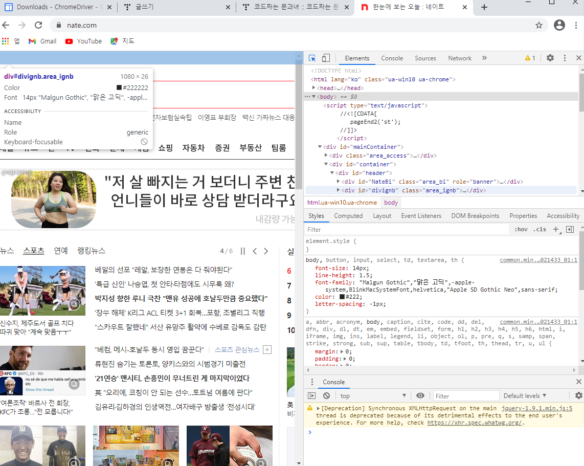 네이트에 들어가서 F12를 누르면 아래 화면처럼 오른쪽에 소스코드들이 뜹니다.