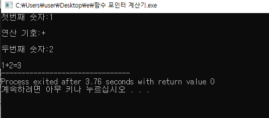 printf("\n%d%c%d=%d",a,b,c,fp(a,c)); //결과값