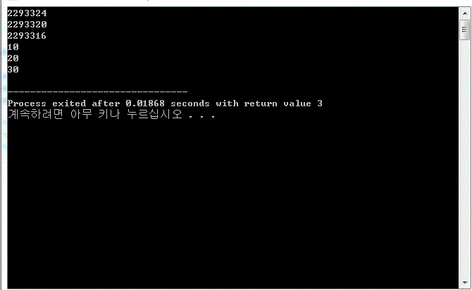 printf("%d\n",pABC[0]); //pABC 배열의 0인덱스위치에 있는 변수 주소값을 가져옴