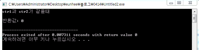printf("\n반환값: %d\n",strcmp(str1,str2));