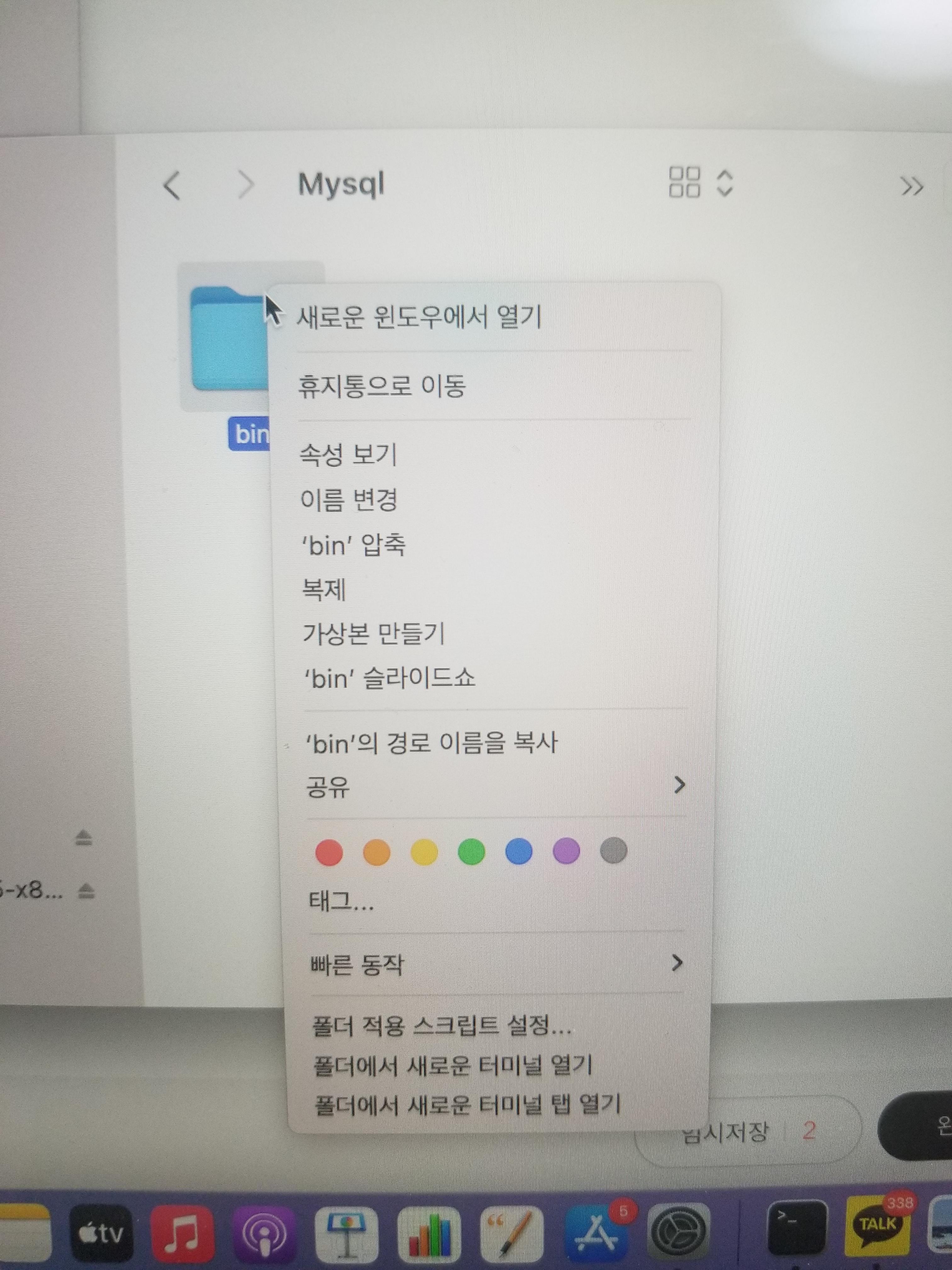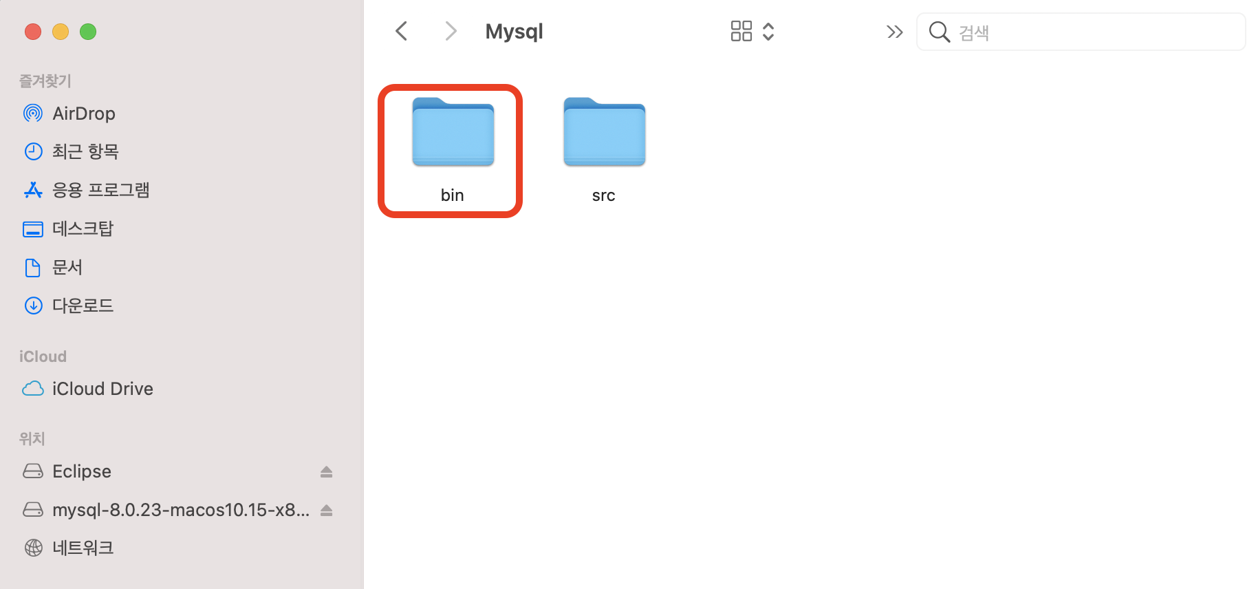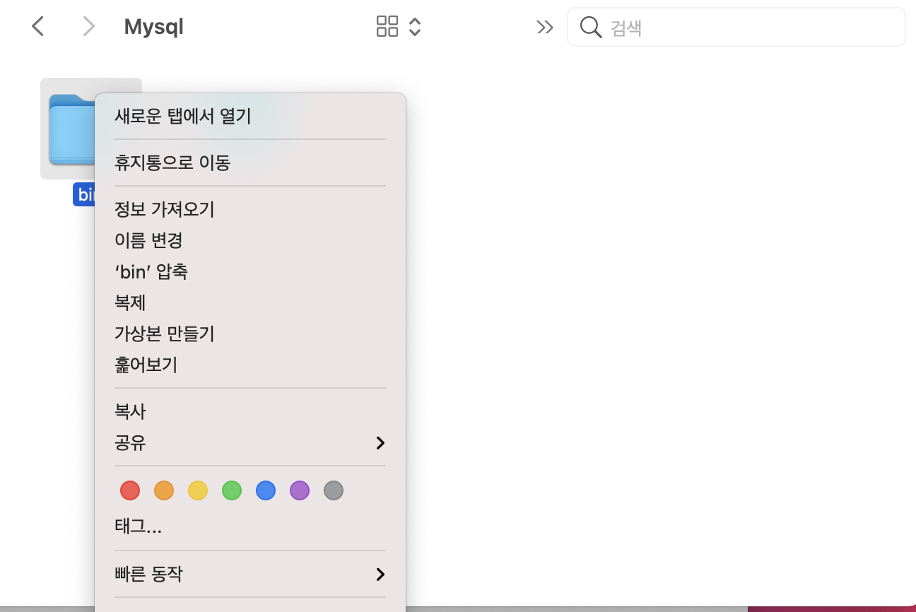 bin 폴더를 두 손가락으로 클릭 하시면