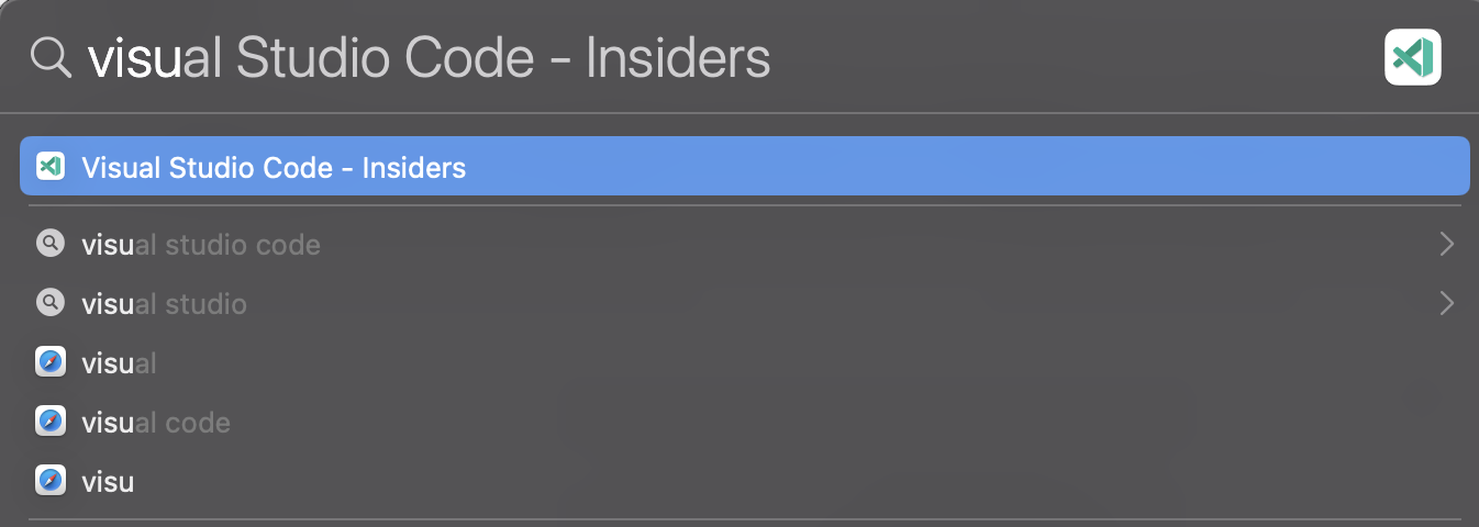 1. "cmd+space bar"를 눌러 Spotlight 검색으로 visual studio를 연다.