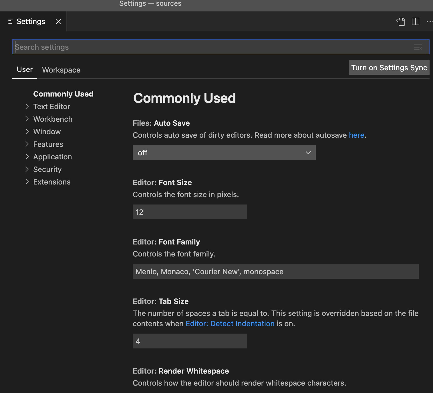 2. Vscode를 열은 후, "cmd + , " (cmd+콤마입니다.)를 하여 설정 검색창을 연다