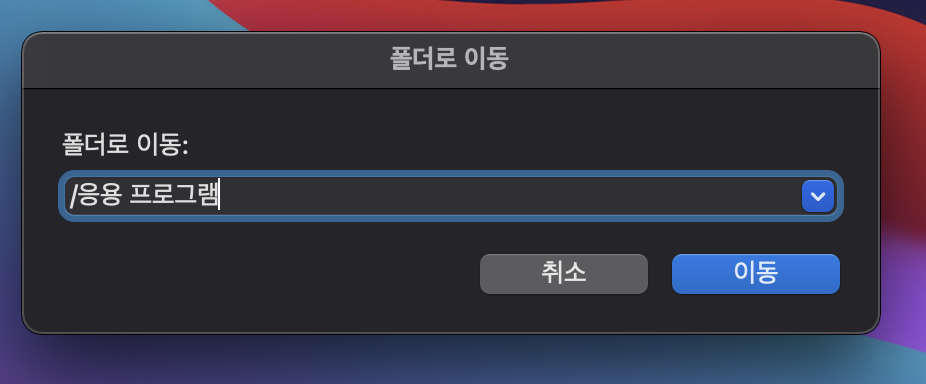 이동 버튼을 누르면 바로 응용 프로그램 파일로 이동하게 됩니다.