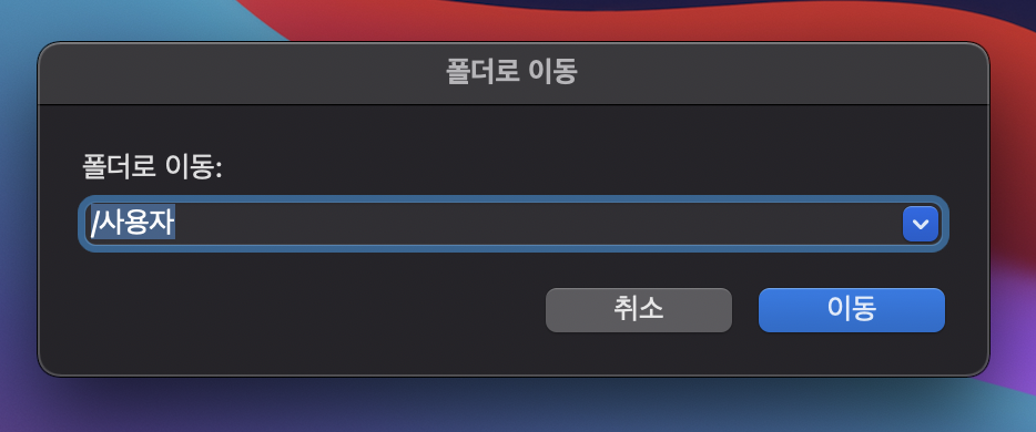위 방법과 똑같이 command + shift + g를 누른 후,