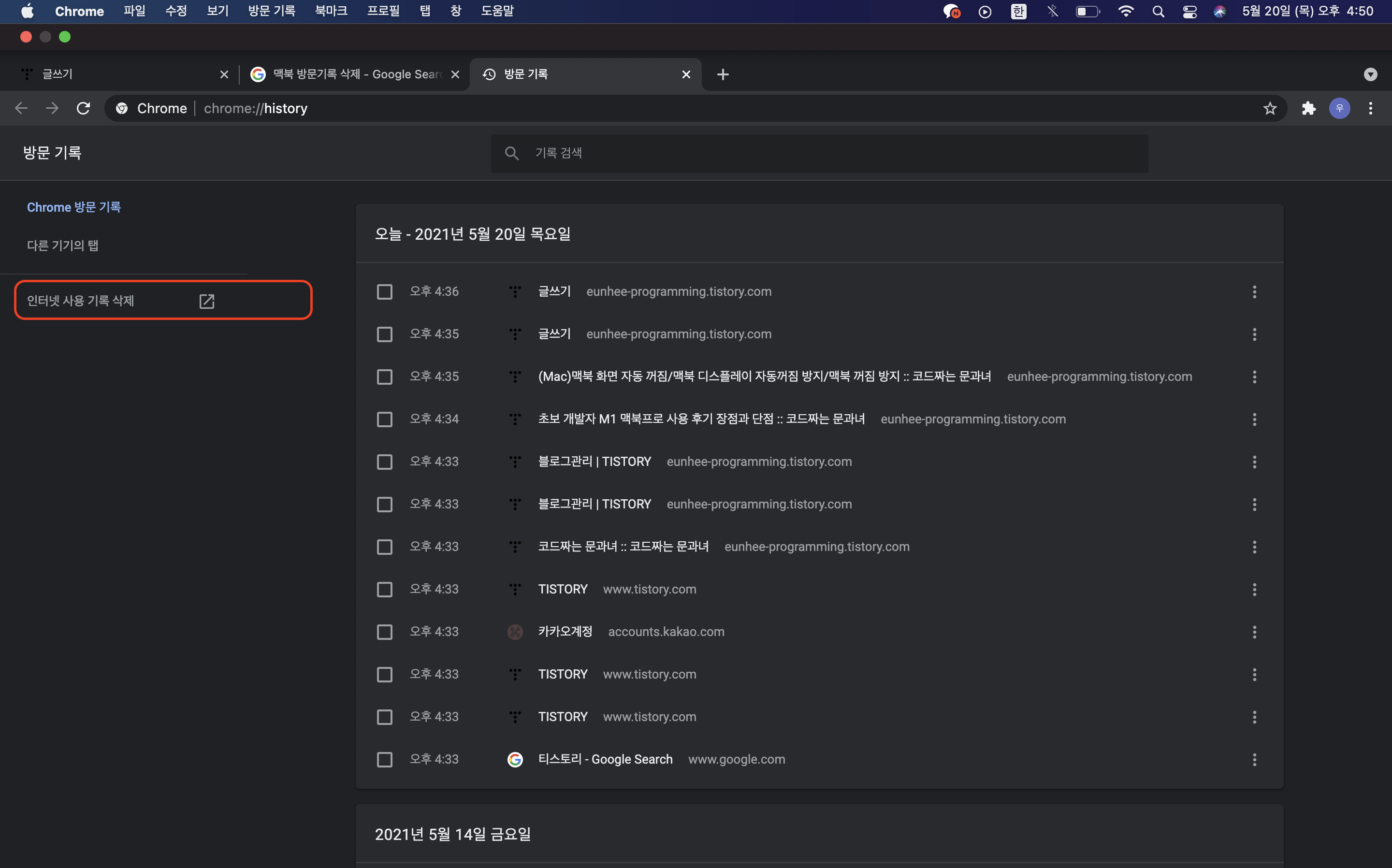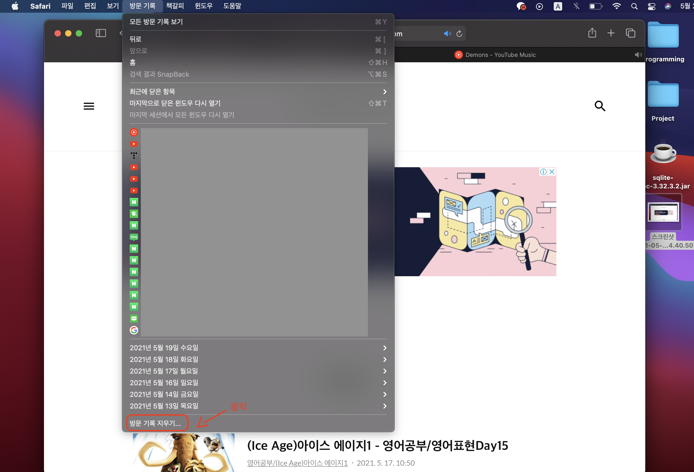 맥북 인터넷 방문 기록 및 쿠키 삭제 법