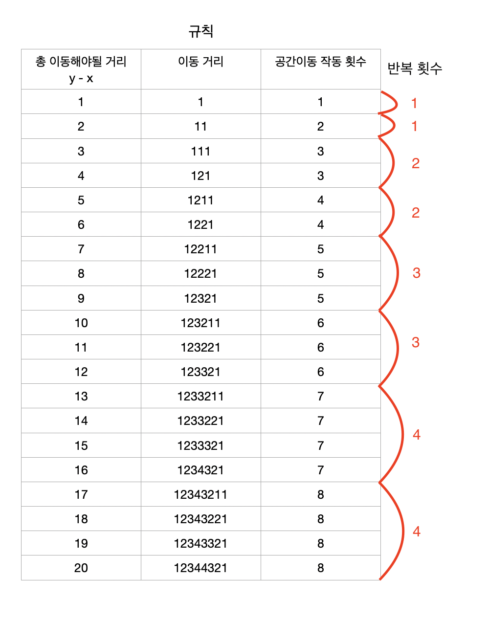 이 반복 횟수의 규칙은 이 문제풀이의 key 입니다.