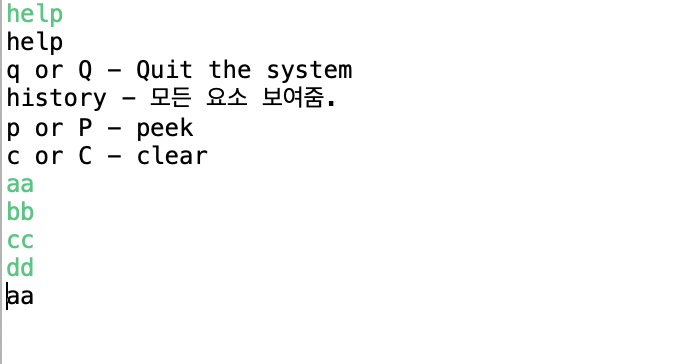 맨처음 넣음 요소 aa를 반환 후 삭제, 그리고 dd 를 넣어줌.