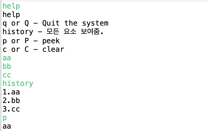 + "%nhistory - 모든 요소 보여줌."